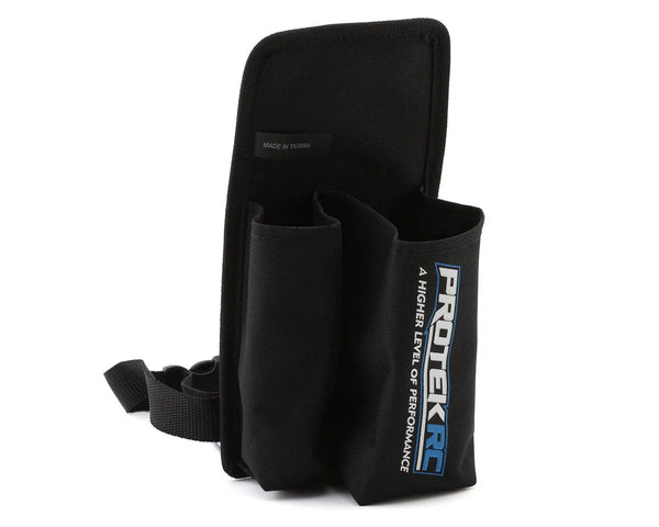 Note: This holster fits most fuel bottles and guns but may not be compatible with every option available. We recommend the ProTek RC "Fast Fill 2" fuel bottle (PTK-7606) and the ProTek RC "Quick Pit 2" Dump Fuel Gun (PTK-7608) for proper fitment.