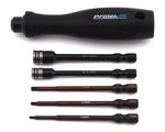 The ProTek RC "TruTorque" 5-Piece 1/4" Drive Hex & Nut Driver Set is an awesome tool kit. Great for RTR's, race chassis' and trail bags, this small and compact kit features 1/4" drive steel hex tips, combined with 1/4" drive steel nut driver tips and an ergonomically designed molded composite handle that is easy to use by hands of any size. The set includes 1.5mm, 2.0mm and 2.5mm hex tips, as well as 5.5mm and 7.0mm nut driver tips. These tips fit the handle socket precisely, and can also be used in a 1/4" drive power driver! A molded plastic tip holder is included that will hold all five tips securely. If you are looking for a tool set to get started, or even just to keep as a second set for your hauler bag, this 5-Piece set is a great option for pilots and drivers alike.