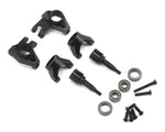 The SSD TRX-4 Front Axle Portal Delete Kit is a CNC machined tuning option that reduces ride height, lowering the center of gravity for improved stability. Plus, by removing the portal boxes the gear reduction is eliminated helping to provide increased top speed.