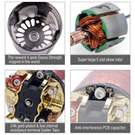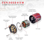 Built-in capacitor boards prevent interferences and a thick rotor wire and imported high-quality brushes keep the internal resistance as low as possible.