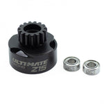 This is the vented 1/8th scale clutch bell from UR. This bell has been designed with three irregular holes to allow air to help cool the clutch bell and clutch shoes for longer life, as well as allow debris to leave the clutch bell for smoother operation.  It includes 2 bearings. This clutch bell works great with the UR Compak Clutch System. Available in 13, 14, 15, 16 and 17 tooth.