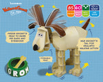 Simply slot together the cardboard parts to build your very own Gromit. The clever mechanics are cracking fun! Wag his tail for a realistic walking legs action; press Gromit’s head to raise his expressive ears and eyebrows. Atta boy, Gromit Lad!