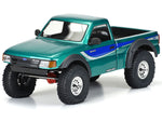 This is a 1993 Ford® Ranger Clear Body for 12.3" Crawlers. The wait is finally over! Pro-Line is proud to introduce the officially licensed 1993 Ford® Ranger Clear Body for 12.3" Wheelbase Crawlers that includes extremely detailed scale molded accessories never before seen from Pro-Line... until now! This 1993 Ranger body was developed from the ground up and designed in the latest 3D computer-aided design environment to be as accurate as possible in 1:10 Scale size.