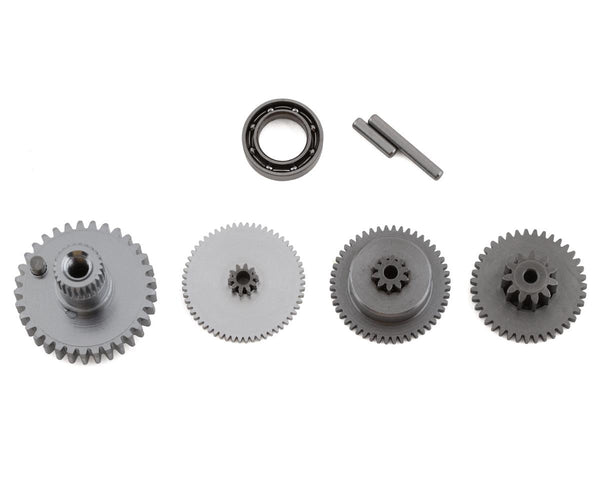 EcoPower WP120T Metal Servo Gear Set for both original 120T and updated 120T upper case. This is the replacement gear set for the EcoPower WP120T servo. Package includes the gears, pins and bearing required to rebuild the gear train on one servo.