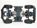 The Trooper uses a waterproof, metal geared 25kg rated steering servo, along with the option to mount a winch servo should you wish to upgrade. A 60amp rated 2-in-1 speed control and 6-channel radio provide the control, while a 35T 550 sized brushed motor and 2000mAH 2S LiPo battery supply the power.