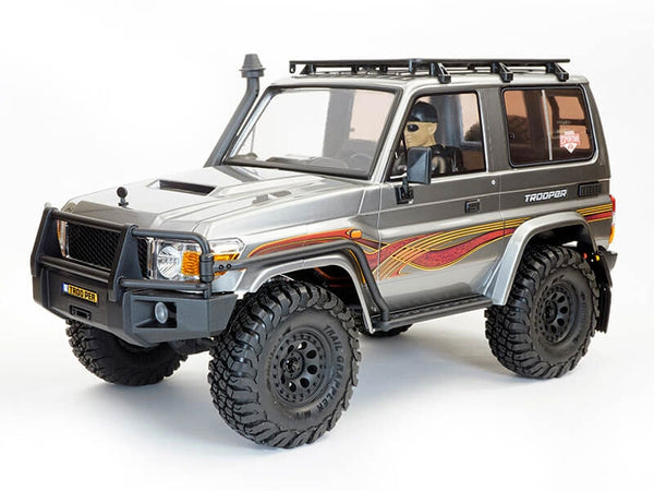 There is something about a short wheelbase trail rig that looks purposeful, and the new Trooper is no different. Mirroring that classic 2-door 80’s/90’s feel, the Trooper features an incredible, fully detailed scale bodyshell adorned with numerous moulded accessories, full function front and rear lights with scale light buckets, finished with an interior and driver figure that truly brings the vehicle to life.