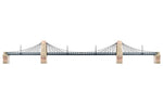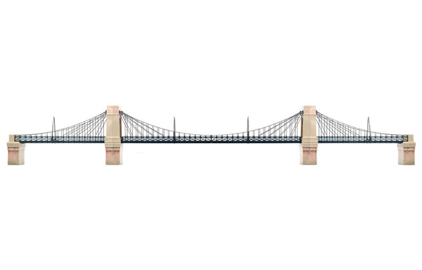 Whether you have a layout of countryside hills or a river running through the city, the grand suspension bridge kit is a guaranteed must-have. The painted brick detailing and railings make this bridge not only a fantastic layout addition but also a gift for the train collector in your life! This bridge has clip-together assembly with self-adhesive brick finish. No tools or glue are required. Length: 1372mm, Height (level to level): 80mm.