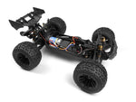 The Quantum2 XT is the authentic next evolution following the successful launch of the Quantum2 MT. Retaining the same reimagined Quantum2 chassis, it boasts an impressive Truggy aesthetic. Key features include the HD wing mount with an impact-absorbing top, designed to lessen the shock experienced during crashes, seamlessly integrating with the Quantum2 rear bumper and adjustable wheelie bar.