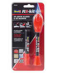 Apply. Light up. Firmly! The Revell FIX-kit UV Super Glue is so easy to use. Due to the special properties of the product, the parts can be easily placed before gluing. The adhesive effect only starts when the bonding area is illuminated with the enclosed UV lamp. After approx. 5 seconds, the parts are firmly bonded together. Revell FIX-kit UV Superkleber bonds various materials such as plastic, glass, ceramics or wood and is therefore extremely versatile.