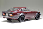 Released in October 1969, the Nissan Fairlady Z went on to become a world-renowned high-performance sports car. A stylish long nose, short deck body was married with a 2-liter inline-6 engine and cushioned by 4-wheel independent strut suspension. The 240Z was an export version with 2.4-liter engine that was also released for the Japanese market in November 1971 on the back of excellent race performance. The top-grade variant of the car was the 240ZG, whose form was accented with the long "G nose" and FRP over fenders, and a plethora of tune-up parts was available to those faithful owners who wanted to tweak its performance and stamp their individuality on this legendary car.