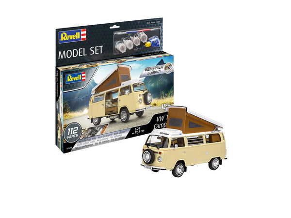 The Revell VW T2 Camper Easy Click Model Set in 1/24 scale is a plastic car model accurately recreating the iconic camper van. This plastic car kit does not require glue to...