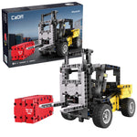 This self-build brick building model of a forklift truck features manual rear steering, forwards and backwards movement, and controllable forks which can be raised and lowered via the side control knob, as well as tilted back for safe transport. A small red container is included that can sit on top of the forks, or be displayed separately. Ideal for both play and display!