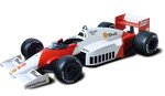 The McLaren MP4/2 was one of the most successful racing cars, securing the most victories in the history of Formula 1. In 1985, the MP4/2B made its debut equipped with a TAG Porsche engine, enhanced by two superchargers capable of attaining 850 hp and displaying aerodynamic designs less showy than the previous cars, and which were also compliant with the evolving new regulations of the period.
