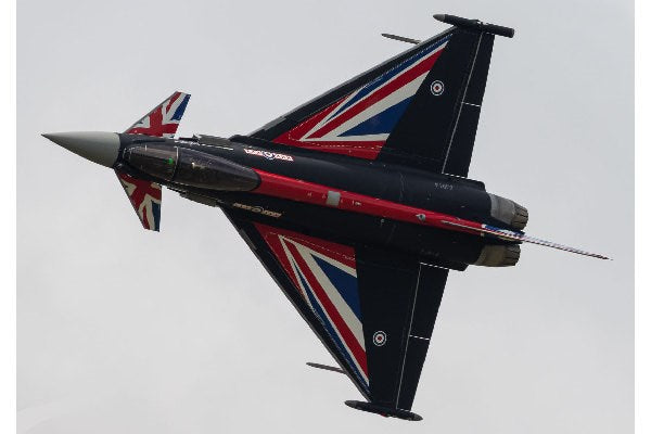 The Eurofighter Typhoon "Black Jack" is a twin-engine, multi-role combat aircraft with an impressive speed of 2.25 Mach and a maximum take-off weight of 55,000 pounds.