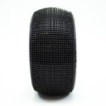 This is the TRIGON truggy tire from PROCIRCUIT. Based on the buggy one, adapting the carcass and other details to the Truggy category, it’s been precision-designed to deliver exceptional performance on clean surfaces, dust or even loose dirt. The TRIGON is the ideal choice regardless of the grip level. This tire features a flat rubber design that maximizes ground contact, providing greater control and an enhanced driving experience.