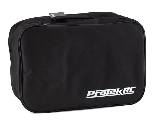 The ProTek RC 1/8 Buggy Tire Bag is a convenient way to haul and preserve your tires, as well as anything else that fits inside one of six included, airtight 8" tall, 4.75" diameter screw on lid storage tubes. The bag itself is made from heavy duty nylon material and measures 17" wide, 12"deep and 9" tall. The lid of the bag features a large ProTek RC logo in white, and has a 16x11" mesh zipper pocket on the inside providing a place to stash setup sheets, tools or other small accessories that may come in handy at the track. If you are serious about keeping your gear neat and tidy, this bag is a must have accessory.
