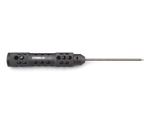The ProTek R/C "TruTorque SL" 1.5mm Metric Hex Driver features a large 20mm diameter handle with machined relief holes and cross hatch knurling to reduce weight and provide a high grip surface. The end of the handle features a rotating end cap that allows the tool to spin in your palm, maximizing comfort during long wrench sessions. Plus, the tip size is laser etched in not one - but the THREE different spots on the handle to help simplify identification.