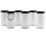 - Six airtight 12.25" tall, 6.6" diameter PET tubes with screw on lid