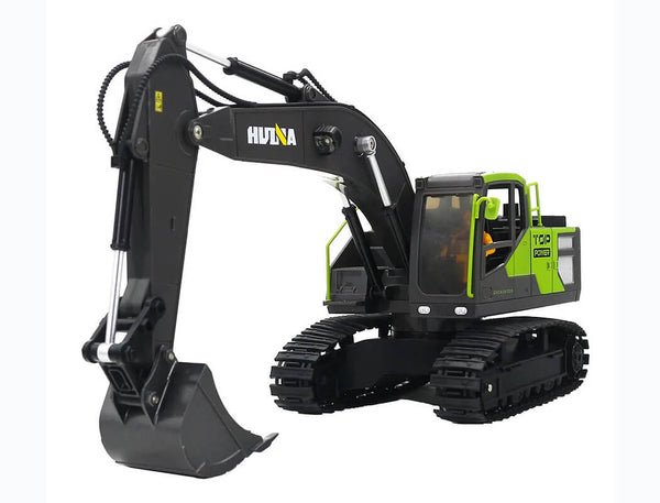 HUINA 2.4G 11CH RC EXCAVATOR GREEN 680° TURNTABLE w/SMOKE