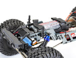 Tall 2.2”, high profile, super-size, and super-soft all terrain block tyres with memory foam provide fantastic traction and drive on the most testing of rocky surfaces. Now updated to an Etronix 15kg waterproof metal geared servo, the Mauler can navigate the harshest of terrain. The heavy-duty steel multi-link suspension provides exceptional articulation, which can be finely tuned via a series of mounting positions for the shock absorbers, links and chassis plates providing a multitude of angles and different wheelbases. Even battery and speed control can be relocated front or rear for custom tuning.