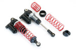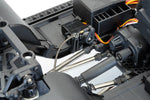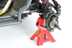 Reduced torque portal axles provide higher ground clearance and drive-train protection, coupled with a transmission slipper. Metal portal, diff, pinion and transmission gears throughout. The rough stuff is soaked up with piggyback shocks that feature a semi-remote reservoir aluminium threaded body and dual rate springs.