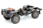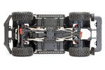 An authentic looking transmission casing, with engine cover over hiding the 25kg metal gear rated steering servo and 20-turn brushed 550 motor as some scale realism, along with moulded inner fenders, rubber mud flaps and side plates.