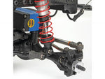 An Etronix 15kg metal geared steering servo is mounted to a brass SOA (Servo Over Axle) mounting plate, matched up with a metal servo horn. Threaded, adjustable aluminium shock absorbers wrap things up before the detailed, semi-scale truck body is mounted via hidden mounts. Super tacky lug tyres provide traction in the worst conditions.