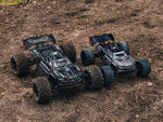 A centre body support, aluminium centre braces and composite chassis side pods add more strength. All-metal diff outdrives and gearbox internals, plus durable steel driveshafts, provide a reliable, heavy-duty drivetrain that holds up to extreme, high-speed bashing.