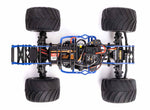 The 1.5mm, powder-coated 6061-T6 aluminium chassis plates complement the monster truck's scale looks while adding durability for racing and freestyle fun.