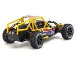 The power and control of the EZ series Sand Master 2.0 delivers excellent handling for thrilling off-road and on-road driving. With its 2.4GHz R/C specifications, automatic frequency allocation makes racing against multiple cars easy to manage. The maintenance-friendly design relies on fewer parts and the body structure can be efficiently assembled or disassembled with the included tools (L-shaped and cross-shaped wrenches). This Readyset includes fully assembled chassis with body set finished with decals applied, making it an ideal first model for newcomers to the exhilarating fun of electric R/C buggies, as well as a great fun-to-drive machine for more experienced drivers.