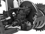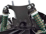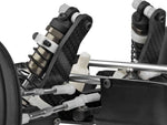 - A Full race-tuned rear suspension includes durable CVA drive axles and dish wheels.