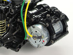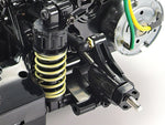 The M-06 chassis features a rear-mounted motor, rear-drive setup and has a longitudinally-mounted battery pack, with R/C equipment positioned on either side for optimum balance and a low center of gravity. 4-wheel double wishbone suspension uses dish design wheels, equipped with 60D radial tires at the front and 60D super radial (hard) tires at the rear. In addition, a 3-piece steering linkage offers nimble handling response.