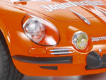This R/C kit recreates the Alpine A110 with an orange Jägermeister livery on top of the proven and fun-to-drive M-06 chassis. The Alpine A110 was a French compact coupe featuring a lightweight FRP body based upon a steel backbone, rear-wheel drive chassis with the rear-mounted inline-4 engine positioned longitudinally. Production continued from its debut year 1963 until 1977, and the A110 attained fame after victory in the 1971 rally in Monte Carlo. In 1973, this car became the first World Rally champion and its Jägermeister orange livery version achieved a class victory in German circuit races.