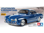 Tamiya is no stranger to recreating classic cars from different eras! This specific kit recreates a true classic in the form of the Volkswagen Karmann Ghia. The Karmann Ghia was a stylish coupé based upon the same platform as the legendary Beetle. Its body was designed by Italian firm Ghia and manufactured by the German company Karmann. The polycarbonate body in this replica sits on top of the Tamiya RWD M-06 chassis.