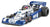 The Tyrrell P34 caused a sensation within the F1 world when it was unveiled in 1975. It sought to enhance braking and cornering performance by reducing the size of the drag-inducing front tires while preserving contact patch area through the use of 4 tires, thereby creating the only 6-wheeled machine in F1 history.The Tyrrell P34 appeared at the 1976 Japanese GP in an overall blue livery, with the car numbers and body side stripes in yellow and sponsor markings written in white. Team and driver names were also written in Japanese specifically for this race.