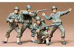 This is a 1/35 scale plastic model assembly kit depicting U.S. infantry in Western Europe after the Normandy Landings in June 1944. _Their subjects are captured in realistic pose: lobbing a grenade, cocking firearms and holding a flamethrower. _Three of the figures are depicted in standard cloth legwear, and one in leather.