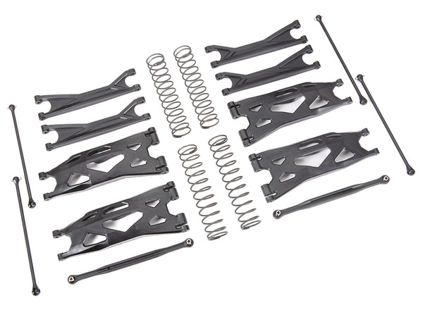 The X-Maxx WideMaxx kit includes extended versions of the extreme heavy-duty suspension arms for a 2.36” (60 mm) wider stance. Molded from our toughest composite material, the new arms offer just enough flex to resist breaking, even in cold weather. Five different color options allow maximum customization of your X-Maxx. New 1.346 rate shock springs replace the standard springs for optimal handing performance. Wider suspension links and steel driveshafts complete the package and X-Maxx's thoughtful engineering makes installation quick and easy.