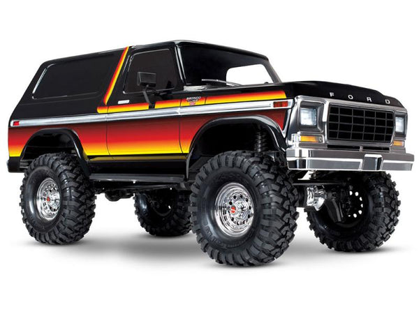 Originally introduced in 1966 as a 4X4 compact SUV, the Ford Bronco matured as a full-size truck in the late 1970s, cementing its status as a rugged off-roader. Traxxas honors the classic 1979 Ford Bronco with this beautifully detailed and faithful reproduction mounted on the incredibly capable TRX-4® chassis. From the chrome wheels and bumpers to the gorgeous Sunset or red graphics, the TRX-4 recaptures the Bronco’s iconic era with the toughness and technology that could only come from Traxxas.