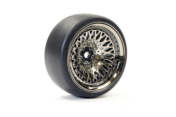 FASTRAX 1/10 (4) DRIFT D1 TYRE W/9MM CLASSIC WHEELS - BLACK CHROME