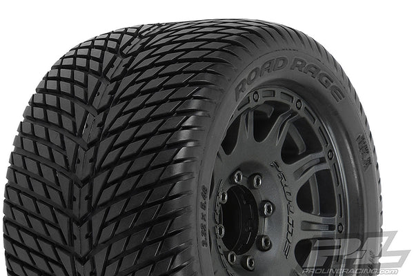 This is a pair of pre-mounted Road Rage 3.8" Street Tires. Calling all asphalt shredding, concrete carving, pavement punishers; check this out! Pro-Line has just released the low profile Road Rage tires mounted on the new Raid 3.8" Removable Hex wheels!