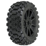 9067-21 | Badlands MX M2 (Medium) All Terrain 1:8 Buggy Tires Mounted on Mach 10 Black Wheels (2) for Front or Rear