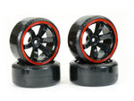 FASTRAX 1/10 STREET/DRIFT TYRE 6-SPOKE WHEEL (6MM OFFSET) - BLACK WITH RED TRIM