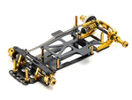 - Black FRP double-deck chassis exhibits an optimal balance of flexibility and strength. Equipped with front reinforcement plate.