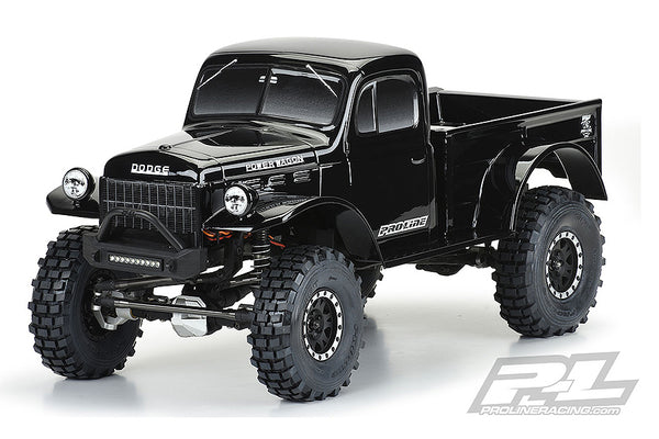 This is a 1946 Dodge Power Wagon Tough-Color Black Body for Crawlers. Pro-Line is proud to introduce the 1946 Dodge Power Wagon Black body for Scale Crawlers made from completely black polycarbonate Tough-Color material! This FirstGen Power Wagon body style comes as 2 pieces (Cab and Bed) for an ultra-realistic look that stays true to the original military-inspired 4x4 truck that civilians could buy. The Tough-Color polycarbonate is made from black material, soyou never have to worry about paint peeling or chipping off. Realistic window stickers are also included!