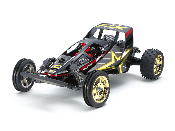The radio controlled Tamiya Fighter Buggy RX Memorial is a high-performance 2WD r/c buggy that is both easy to assemble and easy to afford.