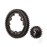 The 50-tooth spur gear and 20-tooth pinion gear combo (1.0 metric pitch) is machined from solid steel with extra-wide steel teeth for ultimate power handling and durability. Traxxas spur gears let you fine-tune the performance of your Traxxas model. Changing gear ratios can help balance acceleration and top speed for different running conditions. Please consult your owner’s manual for more information on recommended gearing options for your specific model.