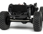 This is the Vanquish Products VS4-10 Phoenix Straight Axle RTR Rock Crawler. With their first entry in the RTR market Vanquish Products has created a must have vehicle packed with the high quality components you expect from this premium brand. Equipped with the sought after VFD Twin transmission and F10 Straight Axles this capable crawler is ready to hit the trail. Featuring a 6% OD (Over Drive) VFD gearset, powered by a 35T VM-1 Motor and VE-1 3S capable ESC, slow speed control and overall crawling performance is extremely impressive. Adding to the capability is the included full function digital 4-Channel VT-1 Transmitter. With multiple model memory and end point adjustment, this transmitter allows the VS4-10 Phoenix RTR to be equipped with an optional fully functioning front Dig and selectable Over Drive giving you next level crawling performance. Locating the axles is a set of stainless steel links providing precise suspension movements and the ability to withstand aggressive use. The drivetrain is equipped with machined ring and pinion gears, chromoly universal axle shafts, and chromoly 6-bolt spools for ultimate durability. With full ball bearings throughout, metal transmission gears and 32P spur/pinion gears the drivetrain provides smooth and reliable performance when tackling the toughest terrain.